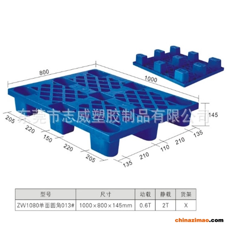 生产销售志威牌仓库防滑九脚塑胶托盘 蓝色承重托盘注塑卡板定制