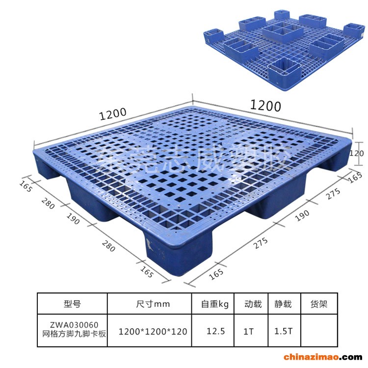 东莞厂家热销志威牌单面方角塑胶托盘超市承重注塑栈板