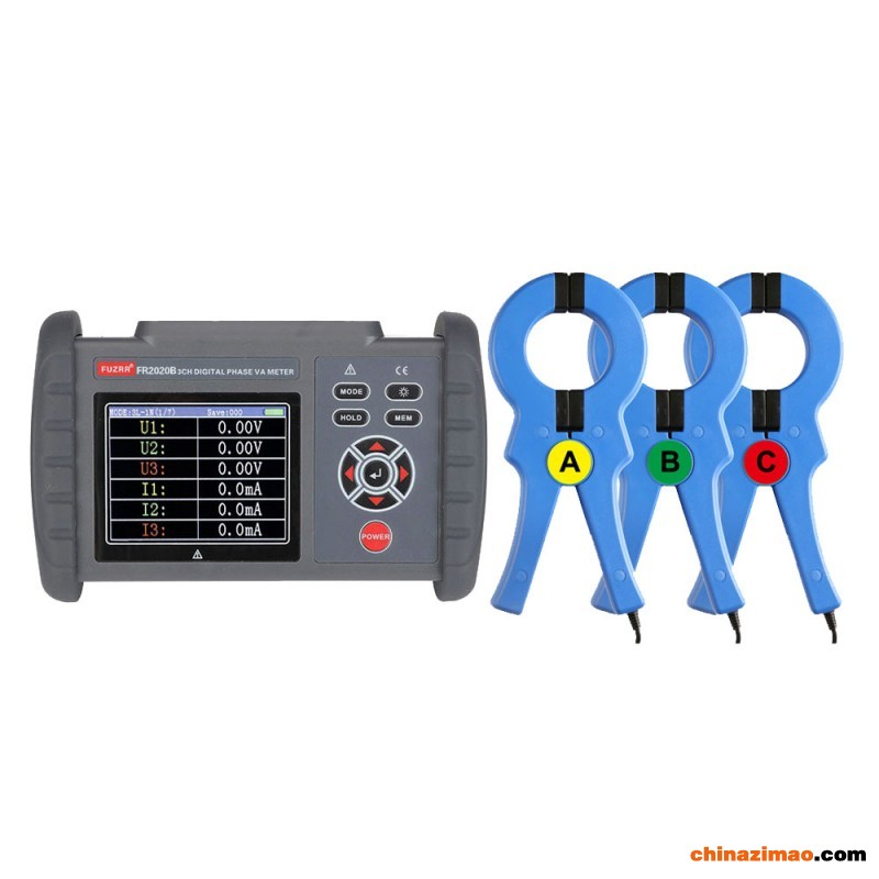 FR2020B大口径三相数字相位伏安表由主机、电流钳、测试线、防护套组成,同时存储400组数据,并具有数据静态保存功能。具有历史数据读取、查阅、保存、报表、打印等功能。