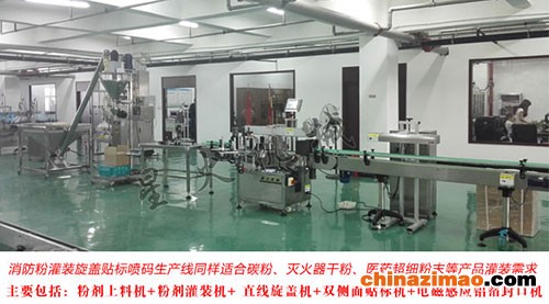 消防粉灌装旋盖贴标喷码生产线/灭火器干粉灌装流水线