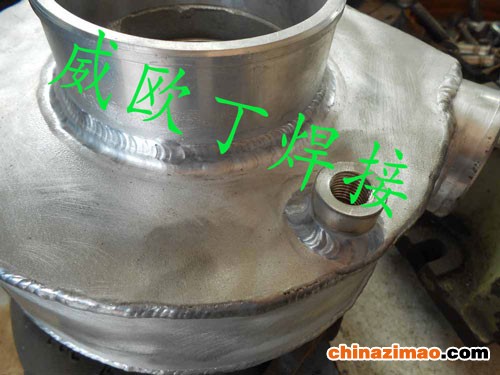 7.进口CAT涡轮增压系统的改装和制作,铸造铝壳体,外面用5052的铝板板料链接壳体形成循环腔,威欧丁焊接技师的精心设计和制作效果如下,采用威欧丁ER4043铝合金焊丝焊接。