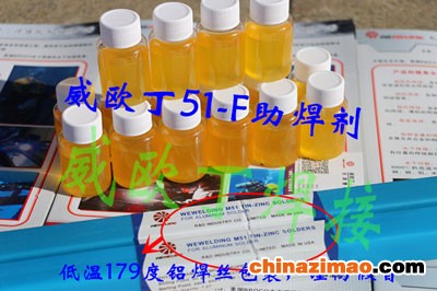 2)破除金属张力。在威欧丁M51-F(全称WEWELDING M51-F)铜铝焊剂的作用下破除金属表面的金属张力,此过程可以有两种方法,一种可以先在母材焊接处抹上少许威欧丁M51-F(全称WEWELDING M51-F)铜铝焊剂,用多孔焊把加热母材<注意此时千万不要用火烧到威欧丁M51-F(全称WEWELDING M51-F)铜铝焊剂,主要靠热传导使威欧丁M51-F(全称WEWELDING M51-F)铜铝焊剂剧烈沸腾>直至威欧丁M51-F(全称WEWELDING M51-F)焊剂剧烈沸腾就可以下威欧丁M51(全称WEWELDING M51)铜铝焊丝;另外一种可以先不在母材焊接处抹焊剂,可以直接加热,然后用威欧丁M51(全称WEWELDING M51)铜铝焊丝沾着威欧丁M51-F(全称WEWELDING M51-F)焊剂下铜铝焊丝于焊接处。