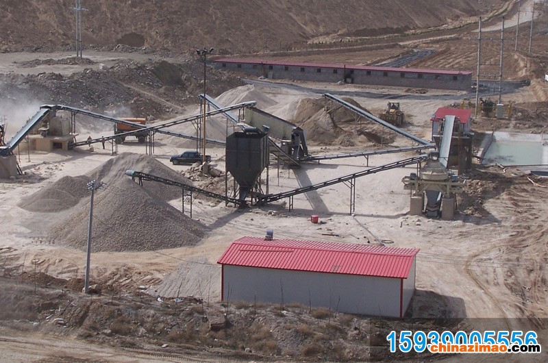 ????? 石料由振动给料机均匀地送到颚式破碎机进行粗破,粗破后的物料由胶带输送机送入到制砂机进行进一步破碎,细碎后的物料被输送到振动筛进行筛分,达到成品粒度要求的物料被送入洗砂机清洗,清洗后由成品输送带输出即为成品;未达到成品粒度要求的物料从振动筛返回制砂机重新加工,形成闭路多次循环。成品粒度可按用户的需求进行组合和分级。如果选用干法生产工艺,可配备粗细粉分离机和除尘设备。