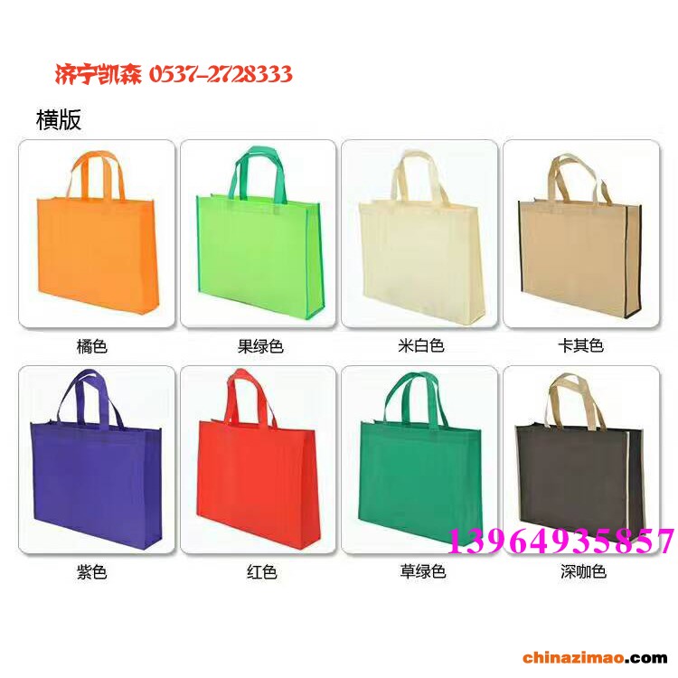 无纺布袋的颜色一般由客户定,没有统一的要求,kaisen001济宁凯森包装制品厂可根据客户的要求提供相应的布色。无纺布袋常用的颜色有:大红色、粉红色、米黄色、