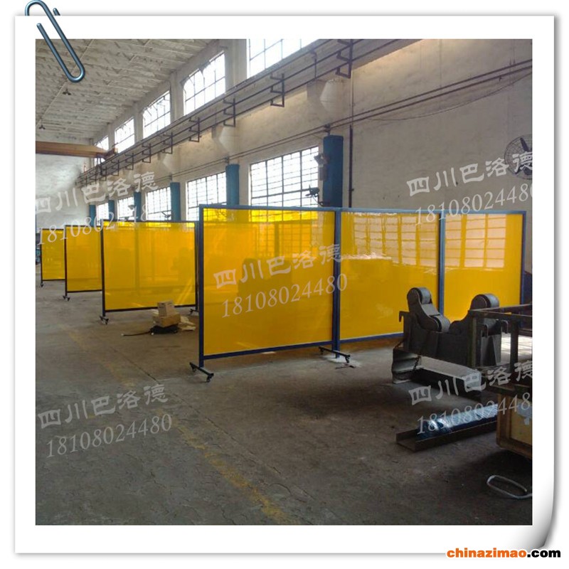 适用于区域隔挡分离,隔挡电焊弧光、隔挡焊渣飞溅,多用在车间内电焊工作区域,符合EN-1598标准。防护屏四周打孔置金属吊环,使用尼龙扎带固定在框架上,屏风配有移动滑轮,可任意移动方位,框架便于拆卸更换。