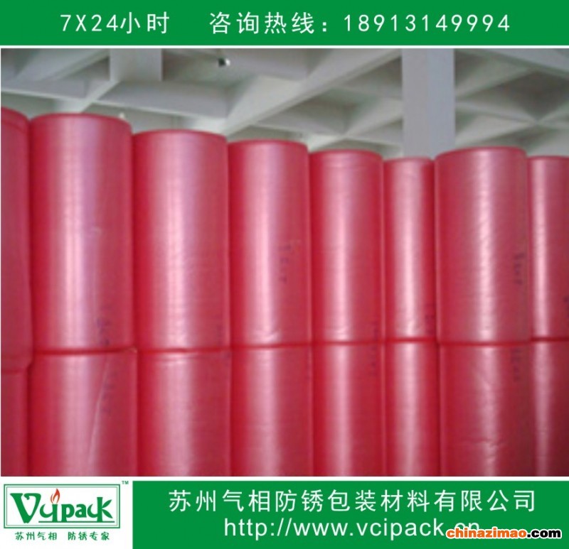 苏州气相防锈包装材料有限公司所产的VCI气相防锈气泡膜/防锈气泡袋,VCI Air Bubble film/Bag是我司新近开发的一类新型VCI气相防锈产品,除具备普通PE高发泡材料的缓冲性能外,还能对多种金属制品提供气相防锈保护功能。广泛应用于电子元件、精密器械、仪表量具和带有棱边锐角的金属制品的防锈、防碰撞、防震、防磨损的包装。