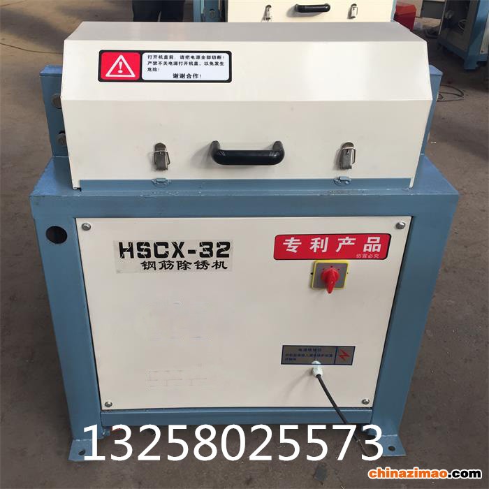 32型钢筋除锈机用途:由于南方多雨天气,钢筋容易受潮生锈,或久置不用造成生锈。国家要求生锈钢筋不能使用的问题。我厂经过反复对螺纹钢圆钢除锈进行研究,独家设计制造了HSCX-32型钢筋(螺纹钢、圆钢筋)除锈机可使生锈的钢筋重新抛光变为新的一样.