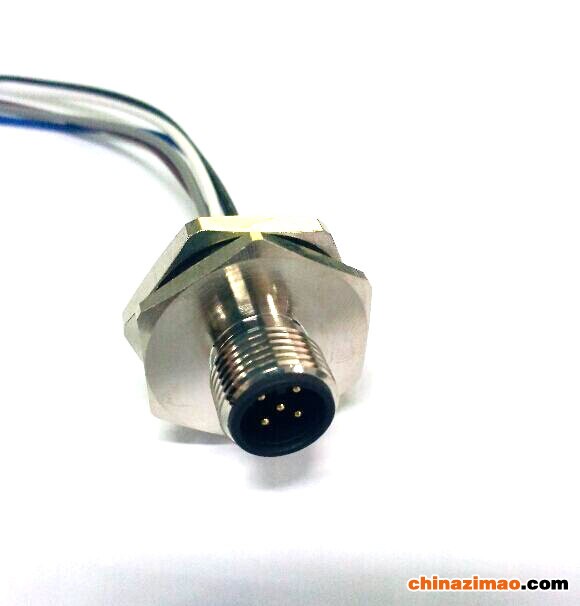 传感器插座,标准M12*1螺纹连接,针型插座,有3针,4针,5针,6针,8针,12针,17针选择,有A/B/D键位,法兰为六方法兰,安装螺纹M20*1.5,板后安装,有圆柱脚(焊板式),焊杯脚(焊线式),带线(线缆长度任选),带线和不带线任选,可定制弯角。配O圈和螺母。