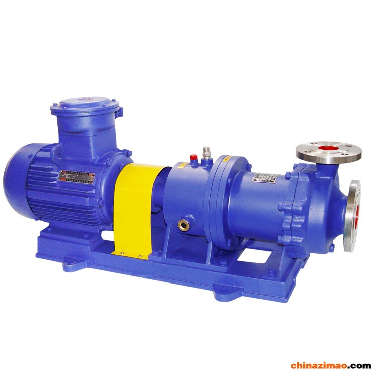 CQB-G高温磁力泵离心泵(简称高温磁力泵)通常由电机,磁力偶合器水冷却装置和耐腐蚀离心泵四大部分组成,其主要特点是利用磁力偶合器传递动力,完全无泄漏。当电动机带动磁力偶合器的外磁钢旋转时,磁力线穿过了间隙和隔离套,作用与内磁钢上,使泵转子与电动机同步旋转,无机械接触地传递扭矩。在泵的动力输入端,由于液体被封闭在静止的隔离套内,没有动密封因而无泄漏,磁力偶合器的磁性材料采用了高温介质而保持强大的磁力扭矩。在电机与磁力偶合器之间加装了水冷却装置,防止泵送高温介质之热量传导至电机。以保持电机的正常运转,从而达到无泄露输送高温介质。泵的过流部件根据需要可分别采用304、304L、302、321、316、316L、UB6、CD4Mcu、钛合金、镍基合金等耐腐蚀材料。 CQB-G 系列磁力泵是全国联合设计开发的新型完全无泄漏耐腐蚀泵,其技术经济指标接近国外同类产品水平,其型式、基本参数及技术性能符合JB/T7742-95《小型磁力传动离心泵》的标准要求.