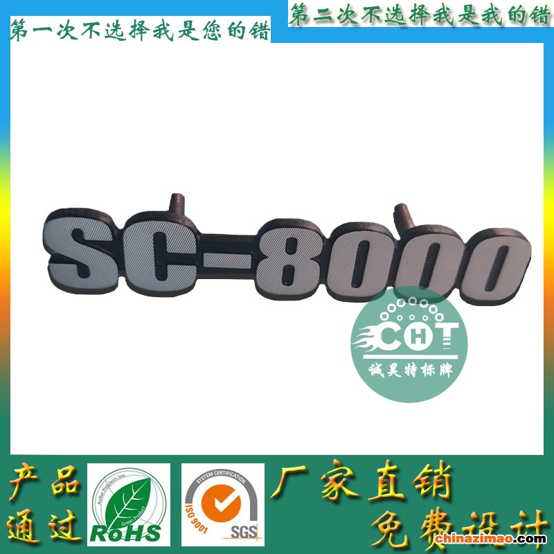 1凸字工艺:我们做压铸铝标牌之前先要开一套五金压铸模具和菲边模具,模具上面雕刻字体和LOGO,雕刻字体和LOGO凹下在模具表面的,将模具加热处理好之后,就可以用于制作压铸铝标牌,将铝板原材料油在模具表面通过油压机挤压成形,凸字工艺就是字体和LOGO凸起来,字体和LOGO表面雕刻拉丝,批花,这样可以让你的标牌会更加有立体感,目前国内国外很多国际名牌都是使用黑底银字工艺这一种做法,黑底可分为(喷漆黑底,亮光黑底,哑光黑底,氧化黑底)标牌底部颜色我们可以供你选择,比如红,橙,黄,绿,蓝,青,紫,白,只要你想要做的颜色,我们就有办法调出来,只要你提供标准国际潘通色号给我们。