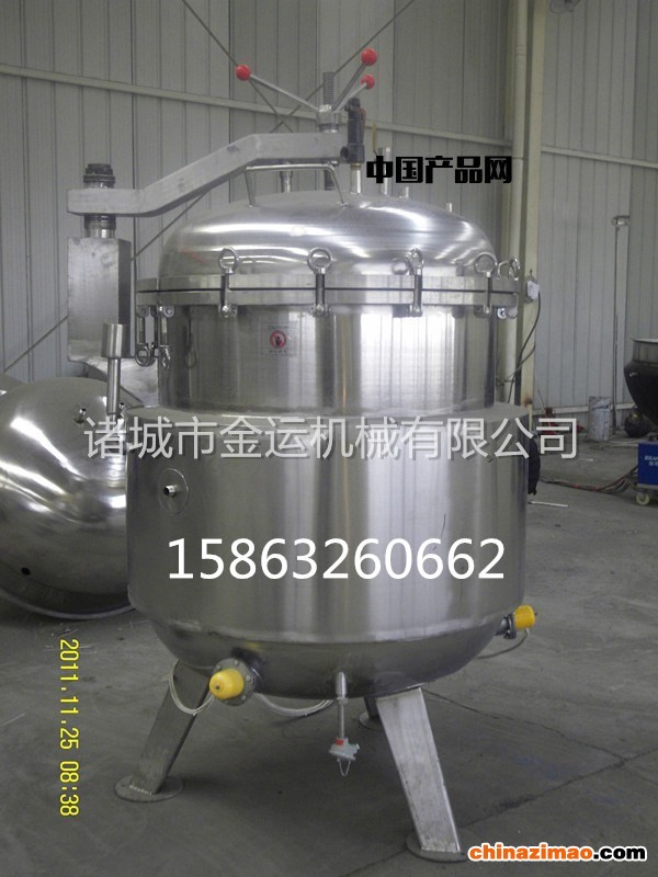 蒸煮锅以一定压力的蒸汽为热源(也可选用电加热),蒸煮锅具有受热面积大、热效率高、加热均匀、液料沸腾时间短、加热温度容易控制等特点。蒸煮锅锅内层锅体(内锅)采用耐酸耐热的奥氏型不锈钢制造,配有压力表和安全阀,外型美观、安装容易、操作方便、安全可靠。多功能蒸煮锅设备具有节能、消声、耐腐、生产能力强、清洗方便等优点,广泛用于乳品、食品、制药、化工、饮料行业对糖果、粽子、酒类、糕点、蜜饯、罐头、卤味、玉米、鸡蛋的加工,也可用于大型餐厅或食堂熬汤、烧菜、炖肉、熬粥等,是食品加工提高质量、缩短时间、改善劳动条件的良好设备。加热、保温、杀菌处理或贮藏液体的必备设备。多功能蒸煮锅罐体采用优质不锈钢SUS304制作,表面经过抛光处理,蒸煮锅由液溶器、升降盖、电加热装置、温控装置、可倾斜装置等组成。可根据用户的不同需求设计制作。