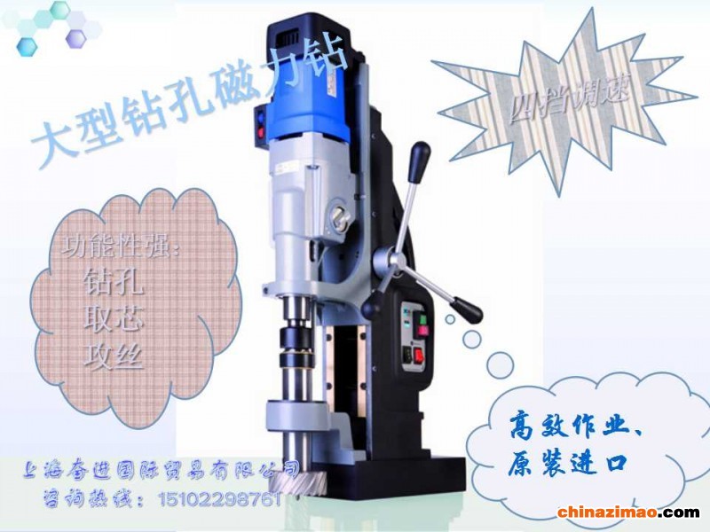 过热保护、扭力控制、4档转速(每档均可无极调速)、磁力显示、自动切削润滑(装置需另购)。 磁座钻,吸铁钻,钢板钻
