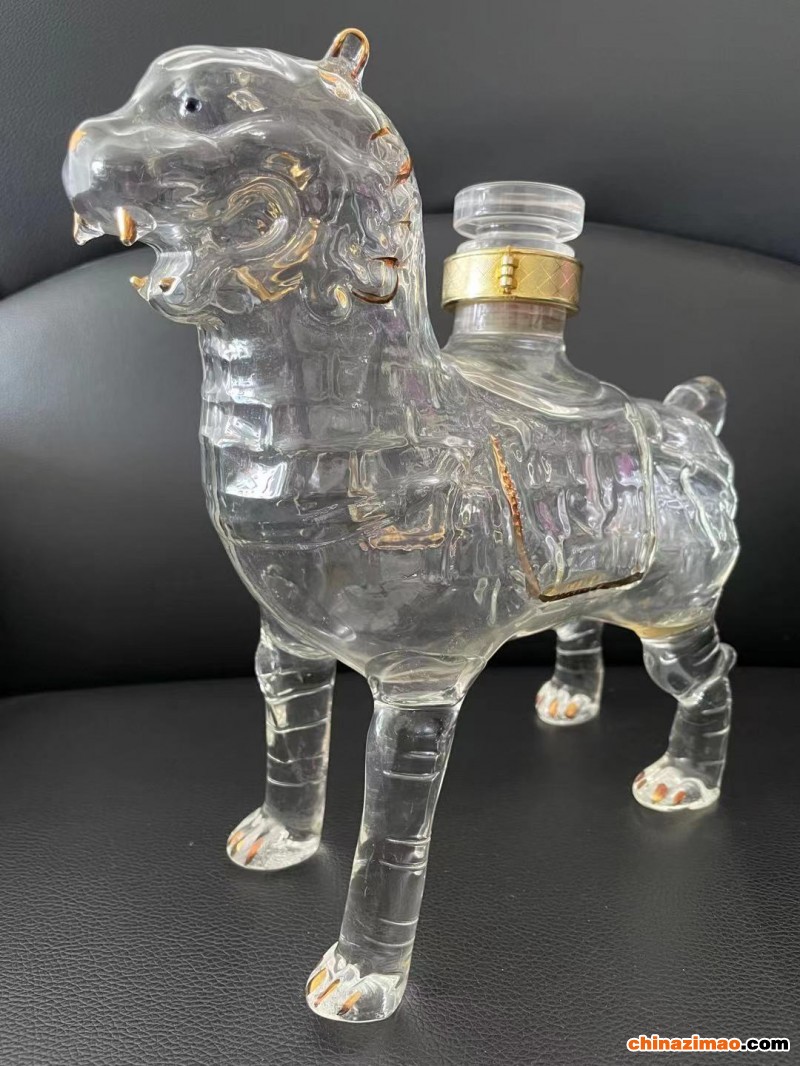 沧州特产铁狮子造型玻璃酒瓶手工狮子造型工艺玻璃酒瓶