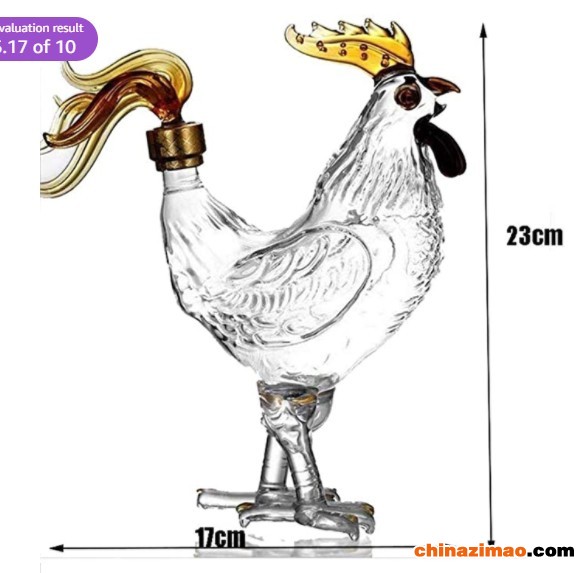 大公鸡造型玻璃白酒瓶吹制异形鸡造型威士忌醒酒器手工玻璃瓶