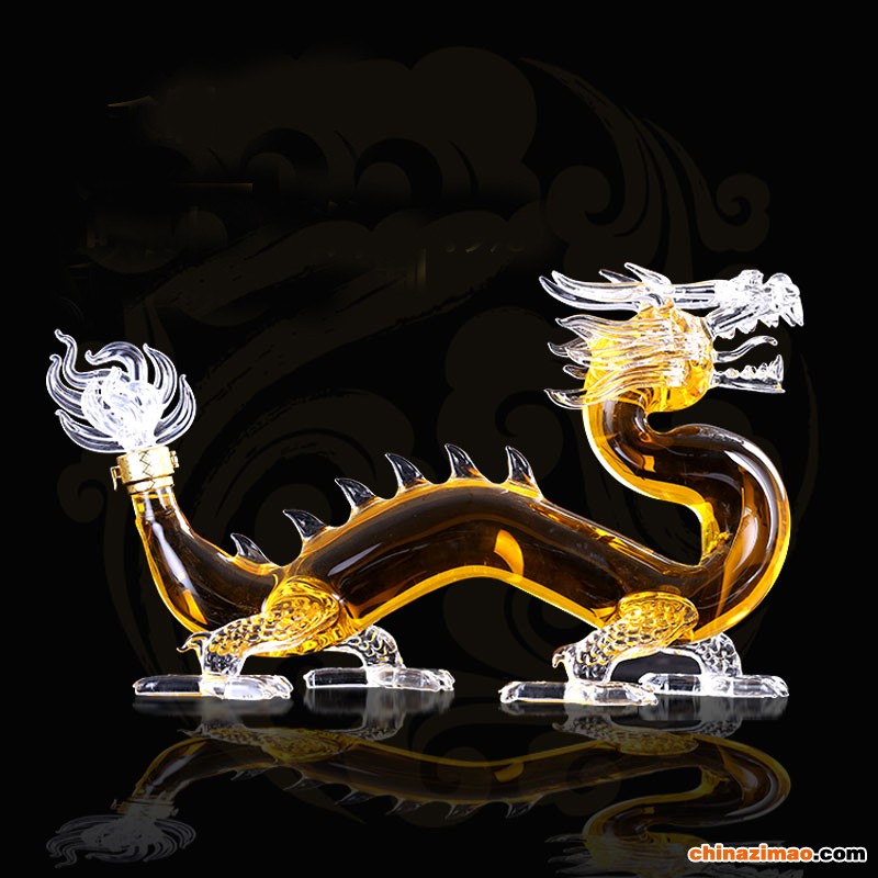 大龙形玻璃白酒瓶吹制空心龙泡酒器生肖龙威士忌玻璃瓶子