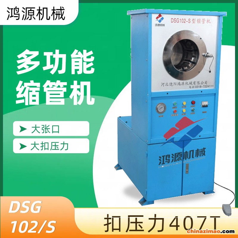 我厂生产的DSG-102/S型锁管机适用于工农业和工程机械液压传动用高压胶管、纤维管、塑料管、复合管总成的扣压加工。采用NC控制,可点动、自动、半自动、延时保压、保压时间可调、多段扣压功能,油缸采用环形结构,可双向进料进行扣压,具有体积小、重量轻、功能多、开模快、易操作、好维修等优点。