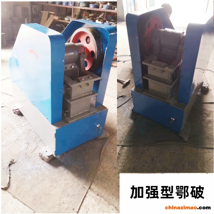 颚式破碎机,结构简单,破碎比大,称之为老虎口。在选矿厂中,多作为粗碎及中碎硬和中硬的物料。它破碎矿石的过程,加入到颚式破碎机破碎腔(由高锰钢材质固定颚板和可动颚板组成的空间)中的物料,由于动颚板作周期性往复摆动,当动颚板靠近固定颚板时,物料受到压碎、劈裂和弯曲折断的作用而被破碎。当动颚板离开固定颚板时,已碎到小于排矿口尺寸的物料,靠其自重从下部排矿口排出。位于破碎腔上部还未破碎到足够小的物料,随之下落到破碎腔的下部,再次受到颚板的作用而继续被破碎。