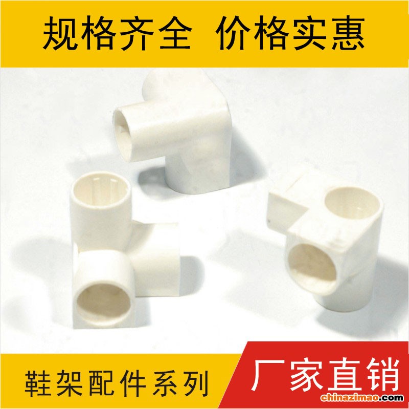 塑料四通,又名三通,塑料连接件,是鞋架常用的连接件,连件管与管之间的塑料接头,安装方便,美欢大方,采用的塑料压注而成 我司开发各类塑料制品,集设计.开模.注塑加工一条龙服务,