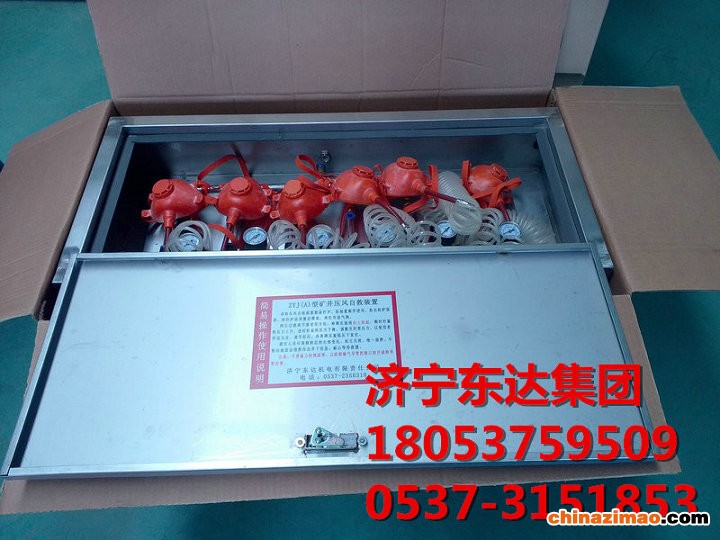 ZYJ(A)型矿井压风(供水)自救装置,本装置一箱六组(可根据要求设计组别),能同时提供六人使用,达到互相照顾的效果。该装置由箱体、安装板、进气管、进水管、净水过滤器、门锁、呼吸器(多组)、排水装置(多组)等组成。箱体、安装板、总进气管、总进水管采用不锈钢制造而成。