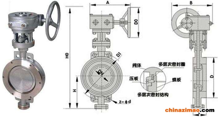 3、橡胶密封圈即可位于阀体上,也可以位于蝶板上,可适用不同特点的介质,供用户选择。