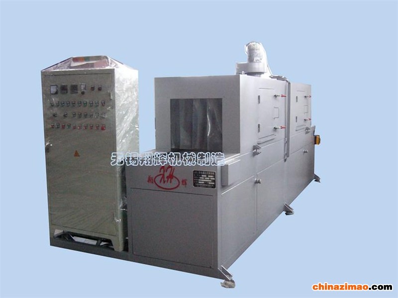 周转箱清洗机名称及型号1.1名称:周转箱清洗机1.2型号:XH800Ⅳ型2. 设备用途和工件清洗要求2.1 本设备为周转箱专用清洗机,用于清洗周转箱,清洗干净后再吹水烘干。2.2 清洗用方周转箱在转运后的污染物,如液体残留和油污等多余物。3. 清洗对象及能力3.1清洗对象:周转箱(塑料箱)3.2工件尺寸: 600*400*320 mm输送速度:0.30-3.0m/min(可调) 清洗工艺4.1清洗剂:环保低泡型清洗液、市水。4.2工艺流程上料→喷淋粗洗→喷淋精洗→喷淋漂洗→吹水→烘干→下料5. 工位功能简介:5.1喷淋清洗主要针对周转箱内外表转运时的残留、污脂、粉尘及其他干涸物进行清洗,为下道清洗提供洁净的箱体。5.2喷淋漂洗主要以切换工件表面清洗介质,提高工件表面残留颗粒杂质的精度,保证工件的清洗介质量,采用市水或纯水逐级溢流漂洗。5.3风切除水:采用风刀对工件表面积水进行脱水处理,为下道烘干提供有利条件。5.4热风烘干:主要针对工件在脱水后的潮湿表面进行直接热风干燥以达到保存入库的要求。5.5兼于以上3道清洗对介质的严格要求,本机在清洗工序间增加隔离门帘及长工位间距(空位),并在工位上方配有吸雾装置,尽可能的减少各系统清洗介质的窜液量,以保证各清洗介质的化学成分不过快的受到破坏而影响清洗的质量。5.6本机采用连续通过式喷淋清洗及吹水烘干,考虑到周转箱比较轻,在水压冲洗时,会脱离输送带,停止前进。工件由特制的工装夹具进行防护和带动。5.7各道清洗介质的循环使用配置了较完善循环过滤系统,以保证清洗效果的稳定、可靠。同时提高了清洗介质的使用性能 ,降低了清洗成本,是目前具较高清洗理念水平的清洗装备。6.0主要技术参数6.1装料高度:850mm进料口尺寸:W720×H350mm输送电机功率:1500W6.2一、二、三清洗喷淋强压:≈0.5Mpa清洗喷淋流量:30t/H清洗泵电机功率:7.5KW×3循环液箱容量:0.6m36.3吹水采用风泵+风刀结构(此装置以免使用大流量压缩空气。)风泵功率:7.5KW×36.4热风循环压强:0.01MPa;流量:1000-1500m3/H/台风机电机功率:2.2KW×3;热风干燥温度:80-120℃(数显自动控制)电加热功率:36KW(恒温,温控)6.6设备外形尺寸:17000*2200*2800(长*宽*高)以实物为准整机配电功率:约170KW(实际使用功率约100KW)7.1清洗循环过滤工艺:7.1.1清洗、漂洗工艺:清洗室→循环液箱→集渣滤框→液面隔离→插板滤网→清洗→袋式过滤器→清洗系统→清洗室7.1.1.1功能说明:本装置以不断进化状态,循环水箱过滤循环系统能轻负荷、稳定可靠的使用,并不断净化过滤系统所不能处理的杂质。油水分离器:分离能力:2L/H.8.主要部件构成及特点说明:8.1本机为连续通过式输送机构,零件通过两道清洗喷淋和一道漂洗喷淋作业,以达到理想的清洗效果。设置为喷淋清洗、风切吹干、隧道式烘干等功能部件。8.2本机清洗介质循环系统配置较先进完备。其内容占整机的三分之二,清洗介质循环系统,二道清洗水箱增加油水分离装置,分离能力为2L/H,使比较完备的循环过滤系统,能长期在较清洁的清洗介质条件下更好的使用。既提高过滤系统的使用性能,又直接延长了清洗介质的使用周期。具备了较高的经济价值。8.3设备对人性话操作要求进行了积极的响应;液位报警与加热系统互锁;水箱死角易经常清理;排液科学合理;排污排油功能;零件通电清洗等,使本机成为了先进的清洗装备。9.本机由机架、检修门、上罩、水箱、喷淋系统、分离装置、风切系统、热风烘干系统、加热系统、液位报警装置、泵组、输液分配控制管路、吸雾装置、连续输送系统、电控系统等组成。名称及型号1.1名称:周转箱清洗烘干机1.2型号:XH800Ⅳ型2. 设备用途和工件清洗要求2.1 本设备为周转箱专用清洗机,用于清洗周转箱,清洗干净后再吹水烘干。2.2 清洗用方周转箱在转运后的污染物,如液体残留和油污等多余物。3. 清洗对象及能力3.1清洗对象:周转箱(塑料箱)3.2工件尺寸: 600*400*320 mm输送速度:0.30-3.0m/min(可调) 清洗工艺4.1清洗剂:环保低泡型清洗液、市水。4.2工艺流程上料→喷淋粗洗→喷淋精洗→喷淋漂洗→吹水→烘干→下料5. 工位功能简介:5.1喷淋清洗主要针对周转箱内外表转运时的残留、污脂、粉尘及其他干涸物进行清洗,为下道清洗提供洁净的箱体。5.2喷淋漂洗主要以切换工件表面清洗介质,提高工件表面残留颗粒杂质的精度,保证工件的清洗,